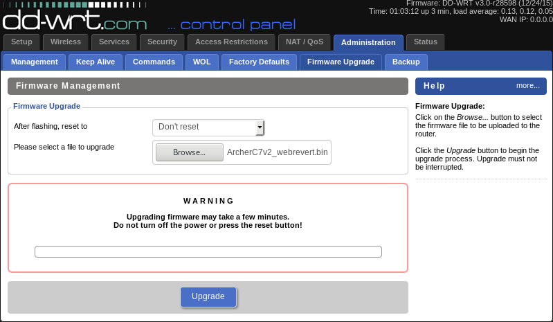 Now, from dd-wrt, flash the router with ArcherC7v2_webrevert.bin that you extracted earlier.